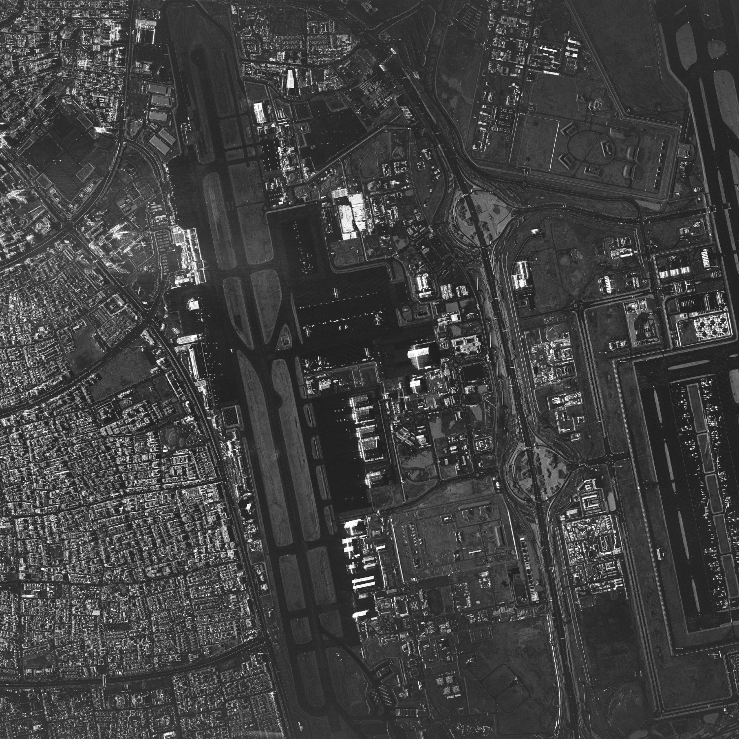 ICEYE radar satellite image from the Singapore trait, taken on 26 January 2019. The image shows various vessels around the International Airport of Changi, Singapore, and its surrounding areas.