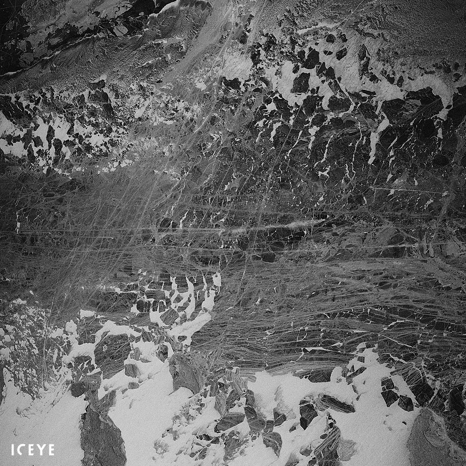 ICEYE radar satellite image from a part of the Thwaites Glacier, Antarctica, taken on 20 April 2019.