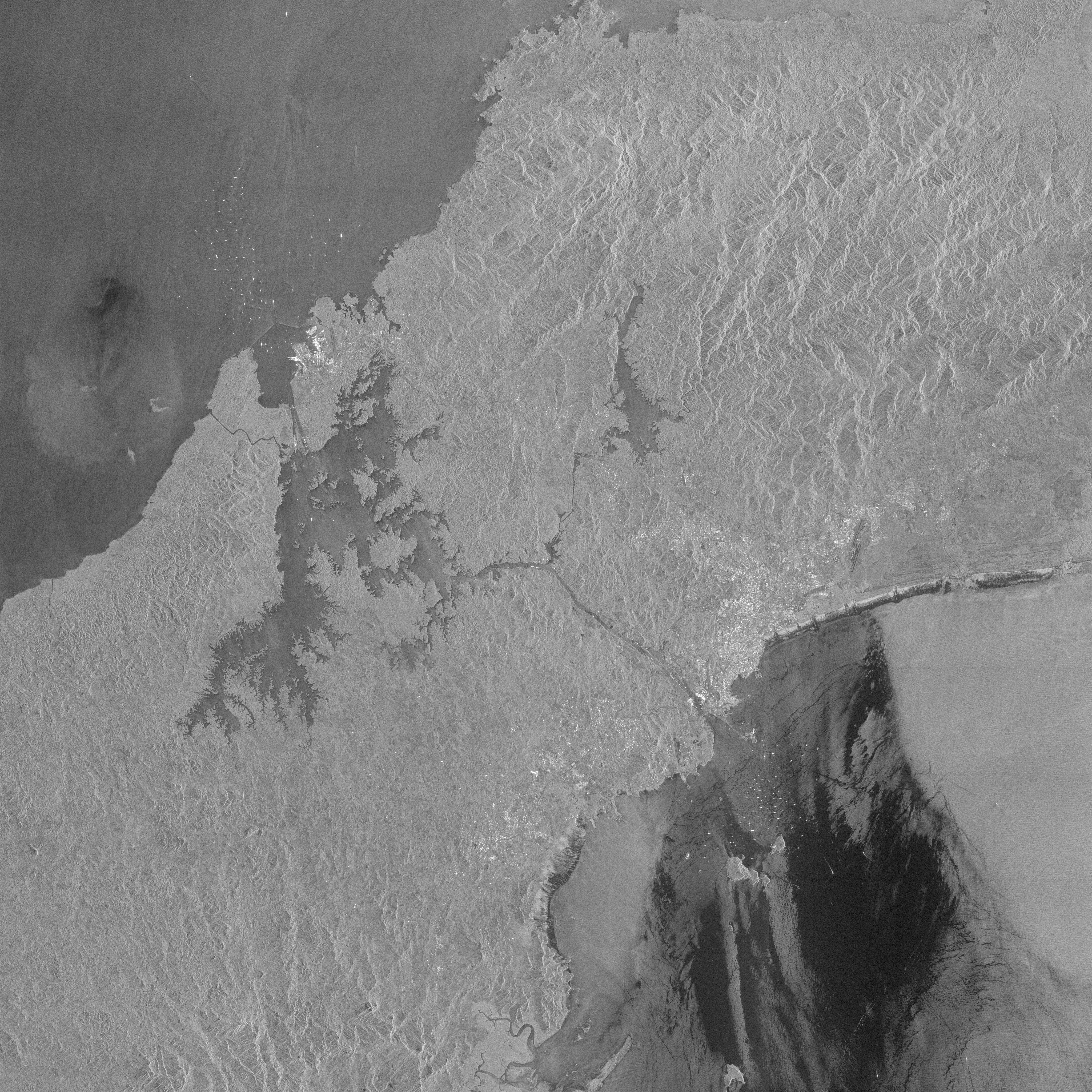 ICEYE radar satellite image from the Singapore trait, taken on 26 January 2019....