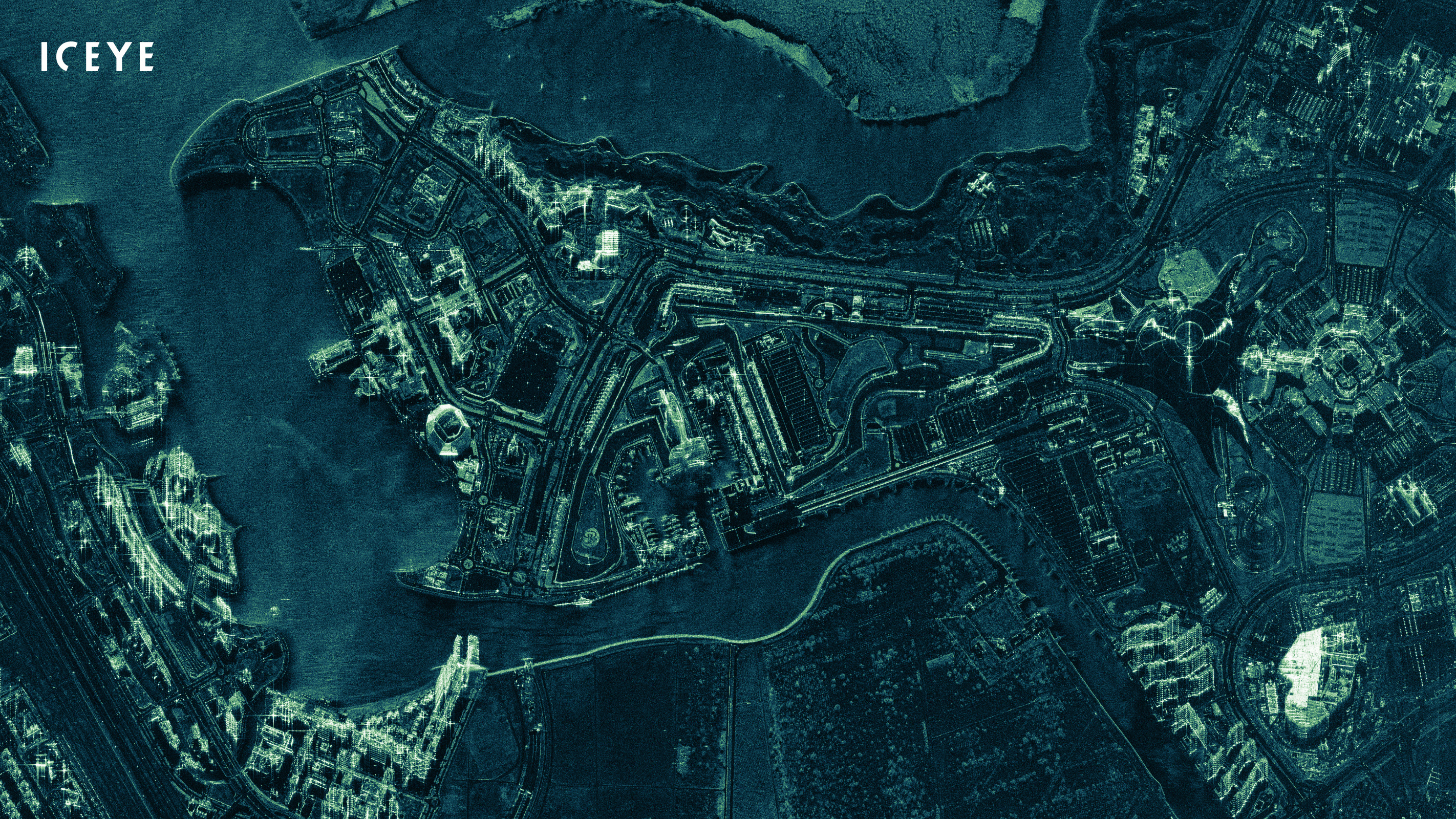 ICEYE Spot image of the Yas Island, Abu Dhabi, United Arab Emirates. The image features the Yas Marina Circuit, where the Formula 1 Abu Dhabi Grand Prix takes place every year.