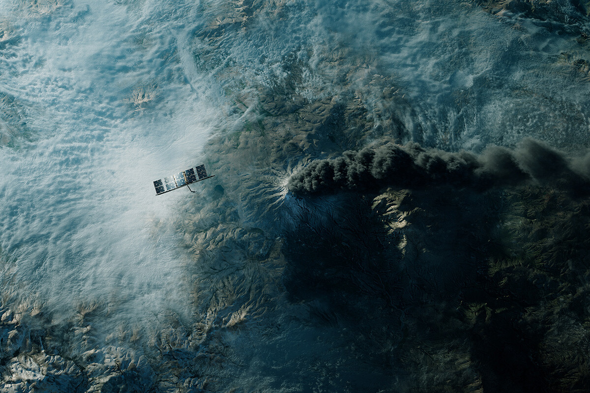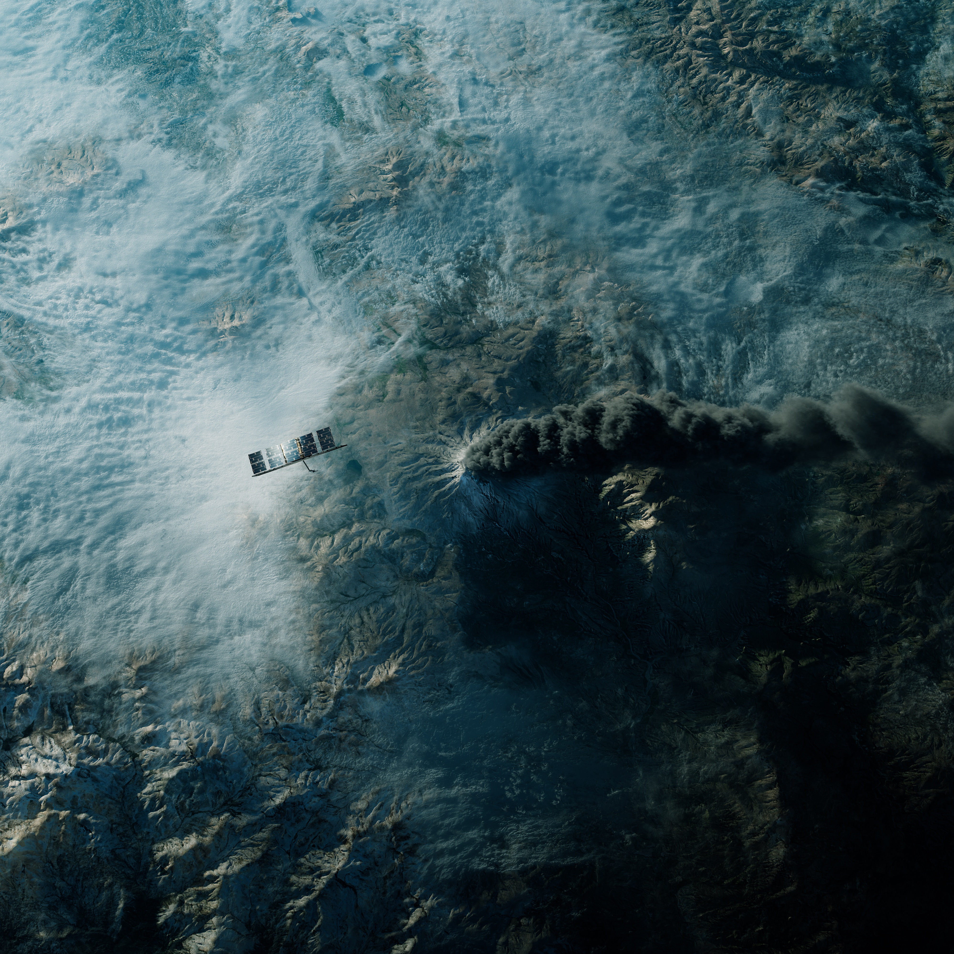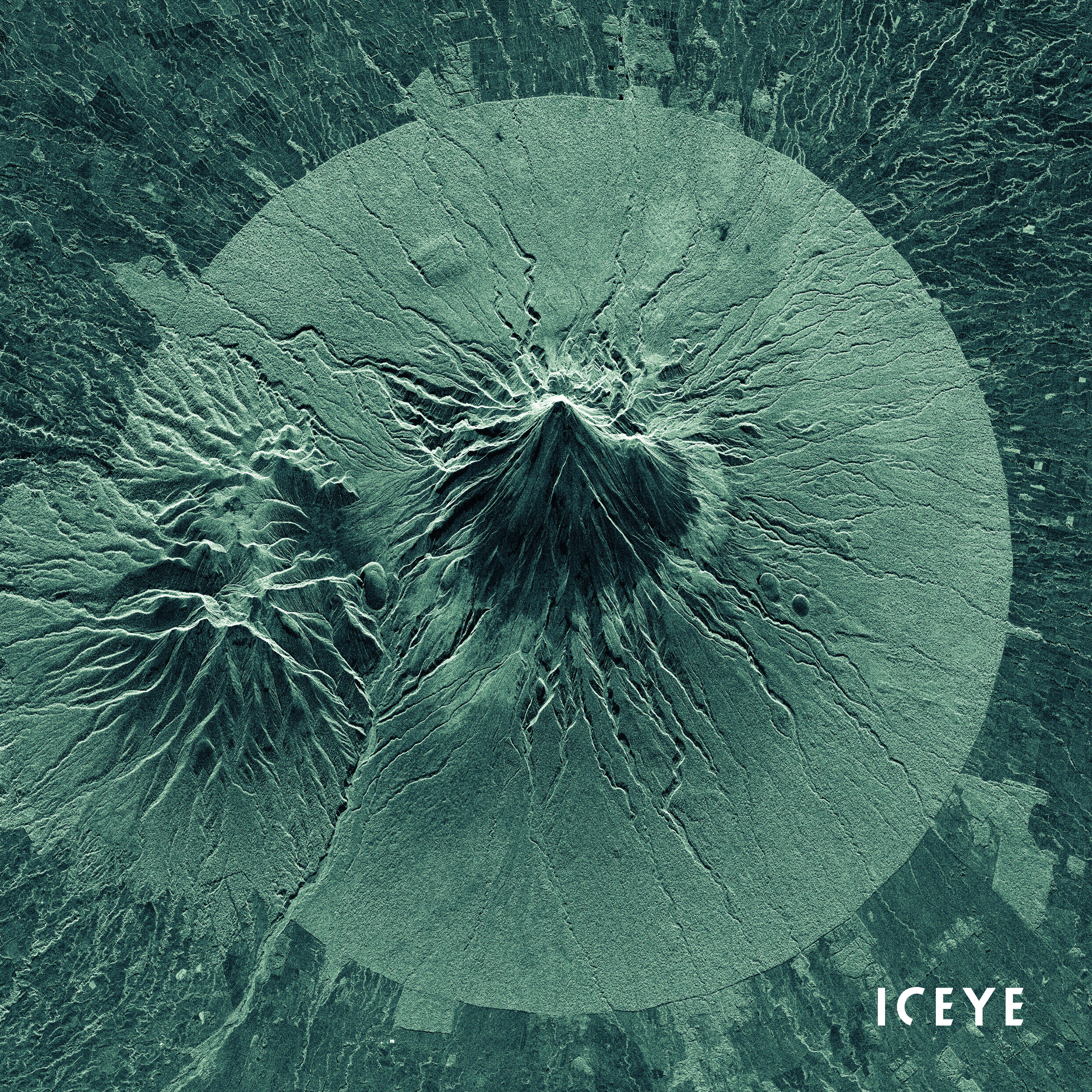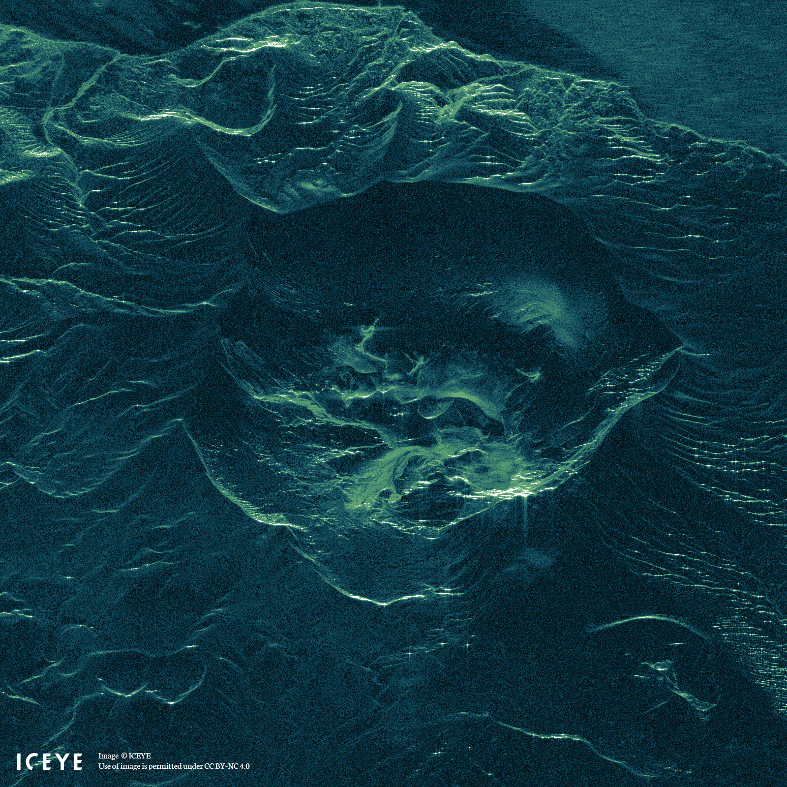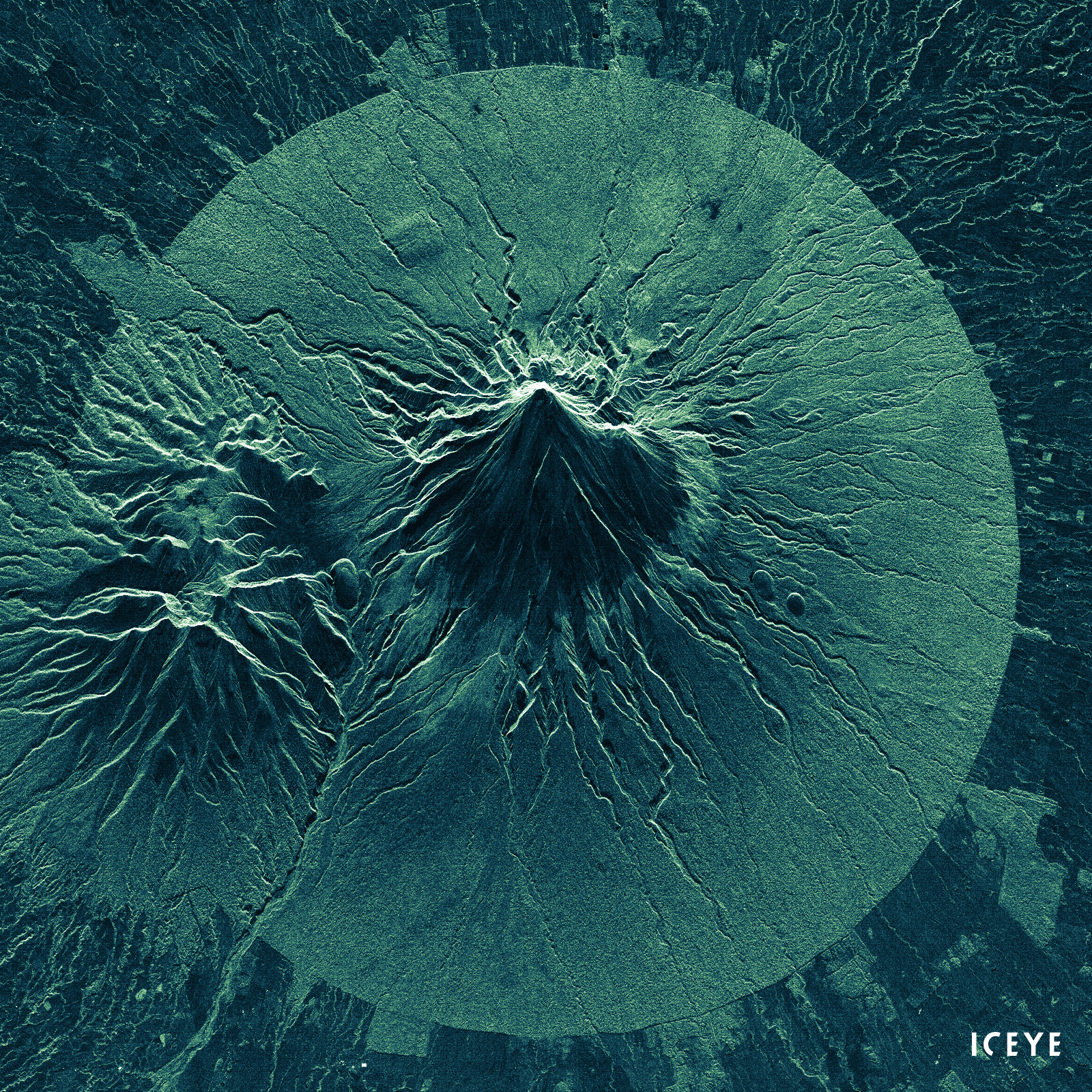 ICEYE SAR Satellite in orbit over a erupting volcano