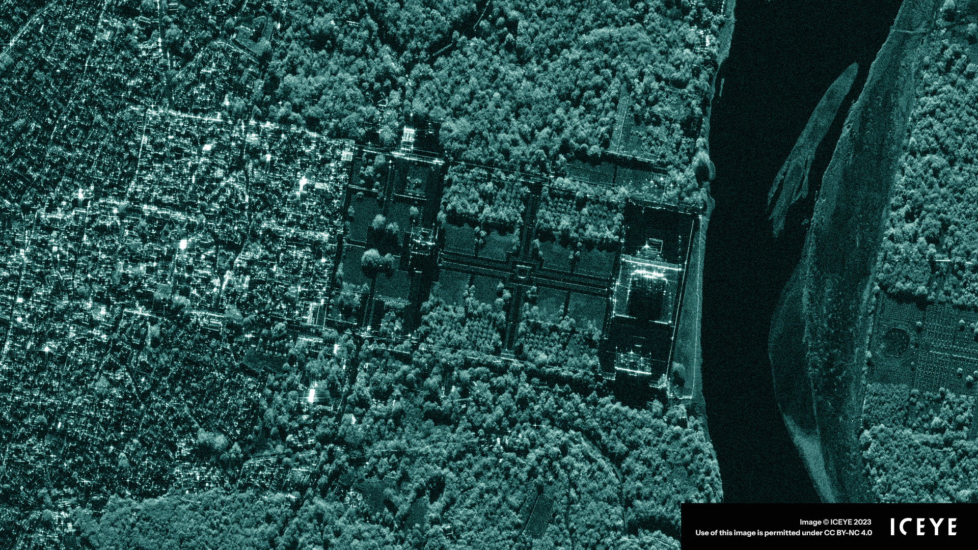 ICEYE SAR image of the famous Taj Mahal taken during nighttime in Dwell mode.