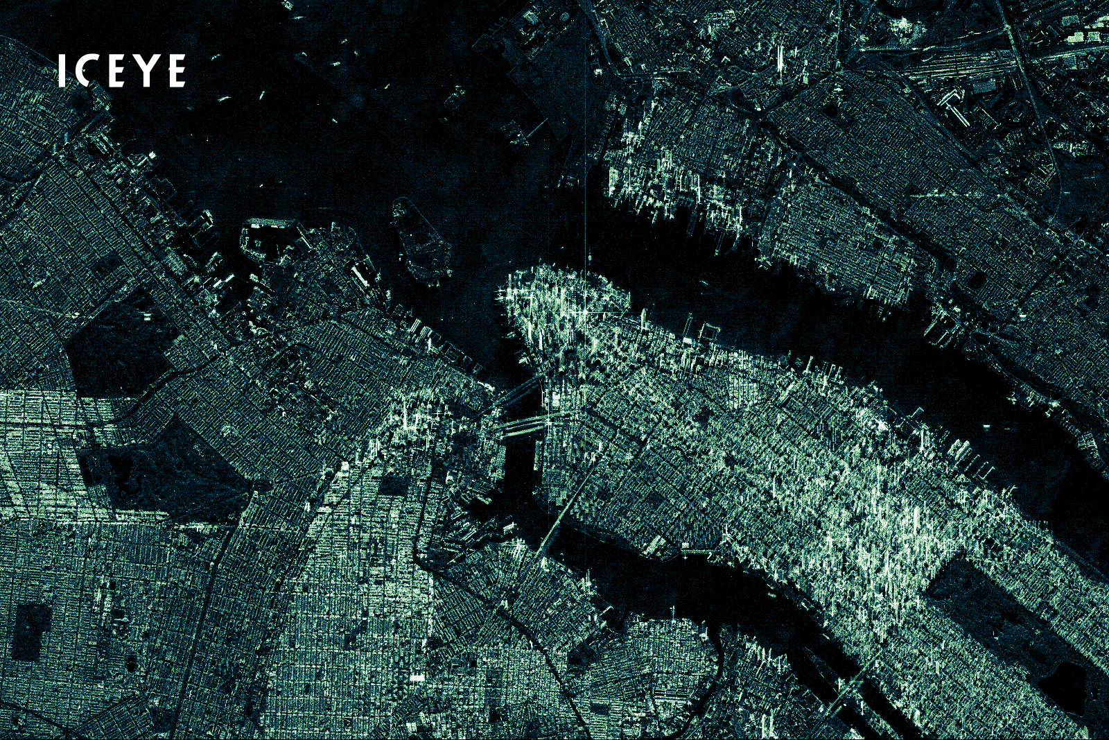 ICEYE radar satellite image of New York, NY, taken in March 2020.